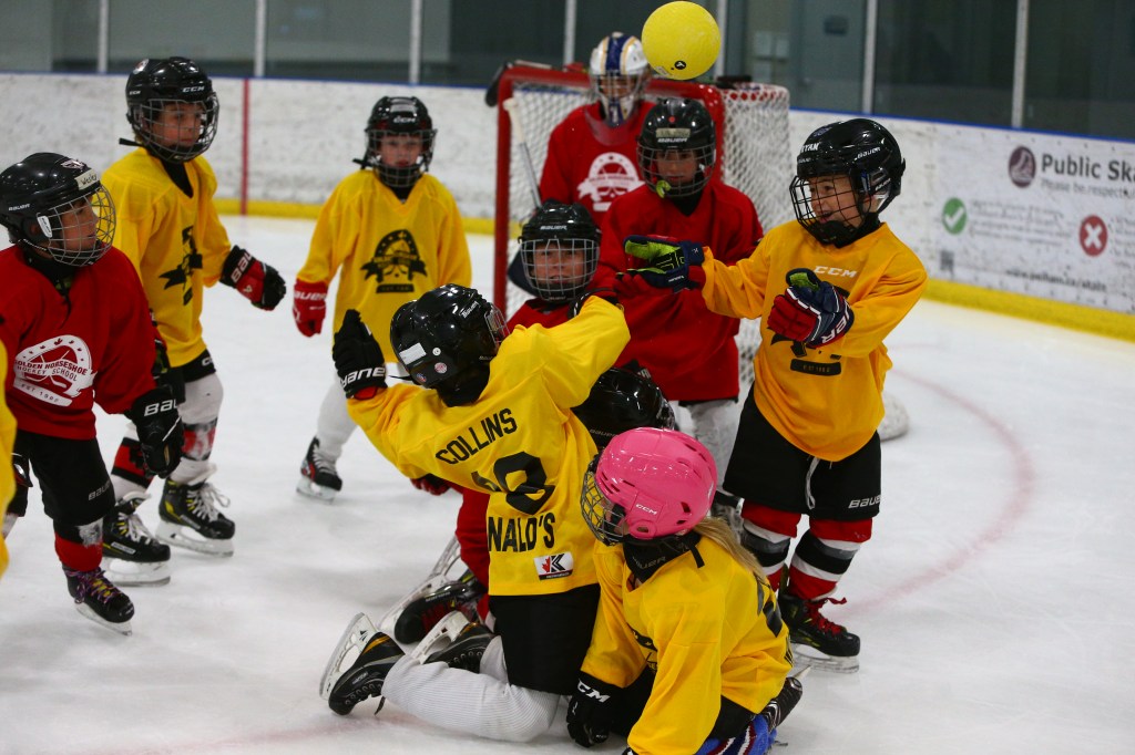 Our off ice program is designed to build stronger athletes and stronger teams. Players take part in a variety of activities including soccer, ball hockey, strength and conditioning, and yoga to improve mobility, coordination, and overall athleticism. Team building challenges help athletes develop communication, leadership, and confidence in a fun, supportive environment. These sessions keep players engaged, active, and connected while reinforcing skills that translate back to the ice. It’s a balanced approach that develops better hockey players and better teammates
